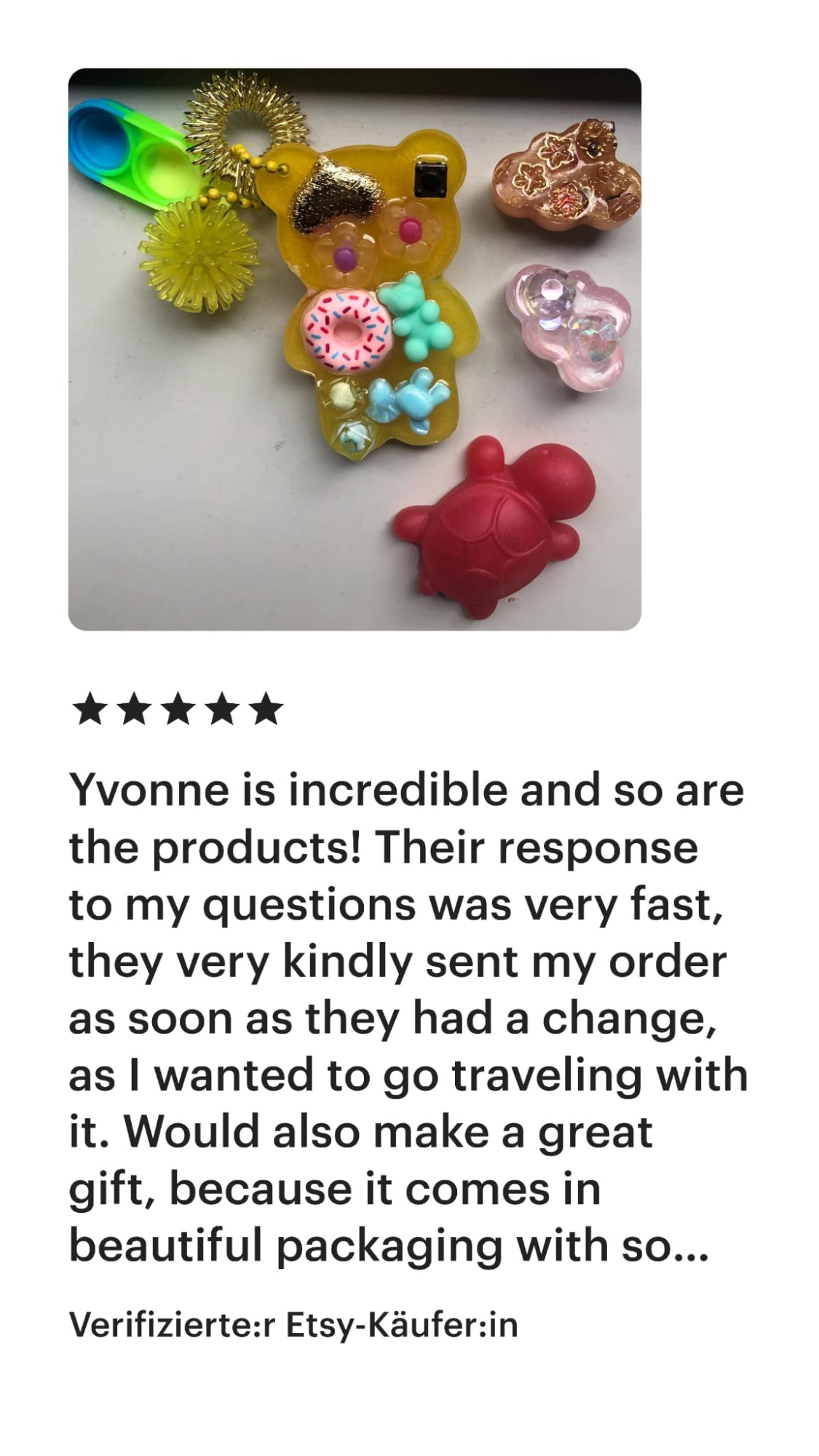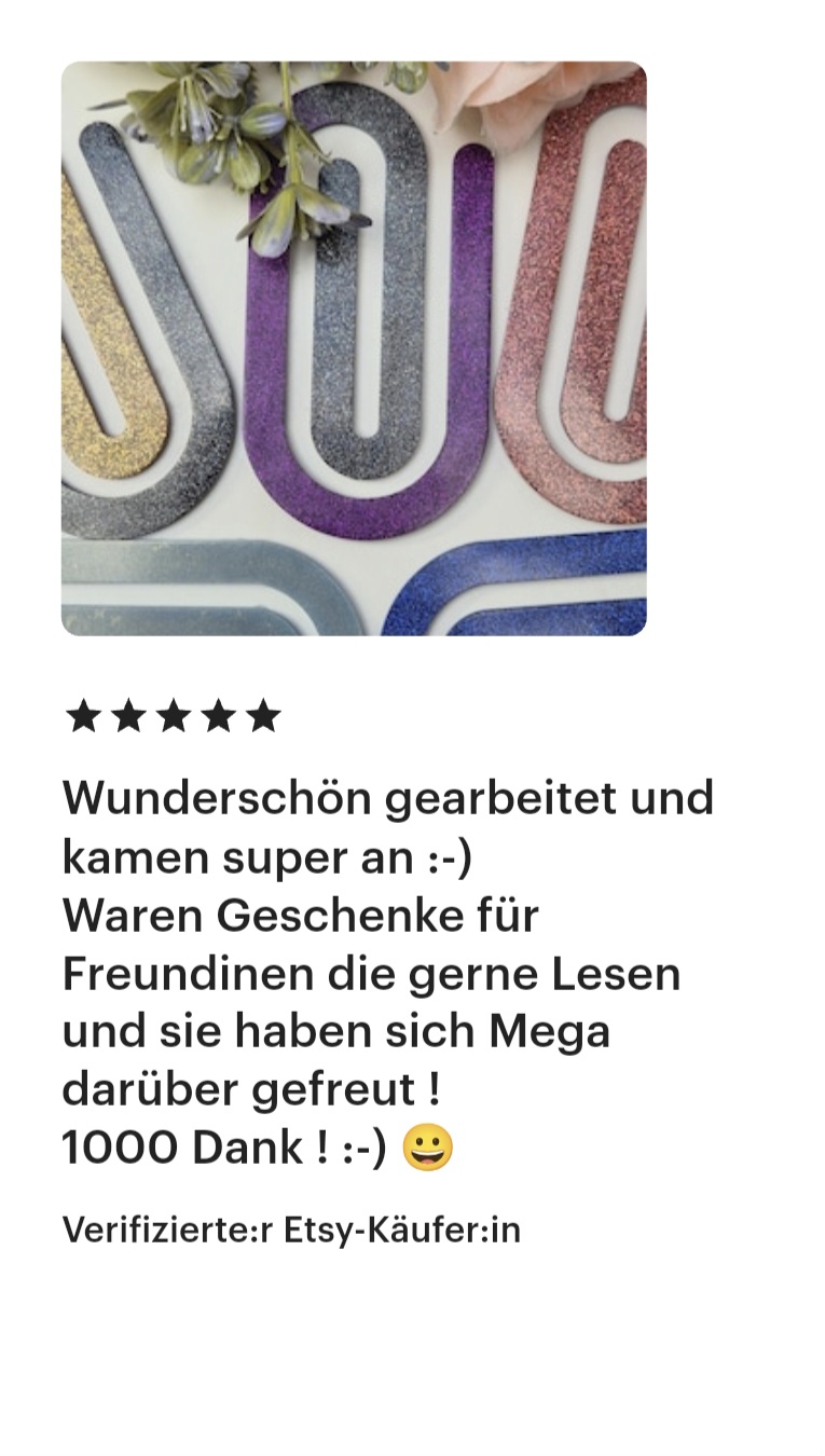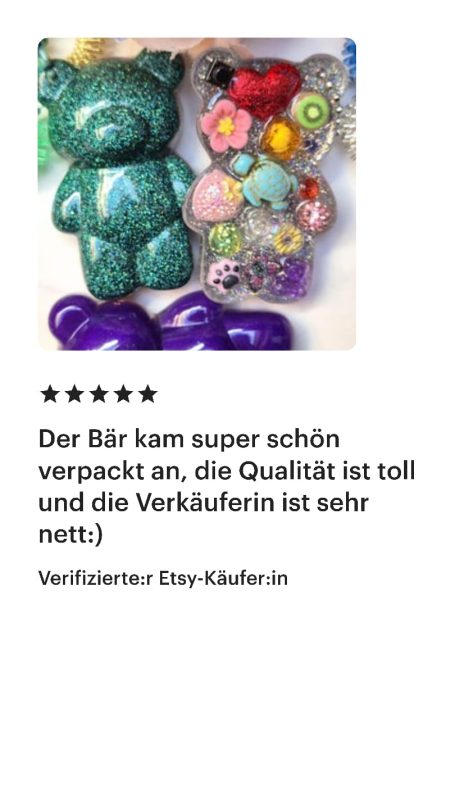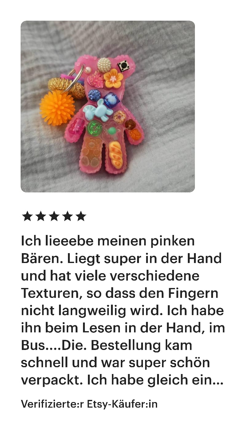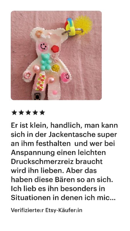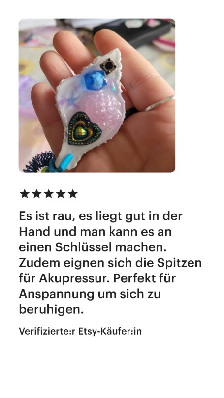 Dieser Shop ist neu, und ich kann nachvollziehen, wenn du dir unsicher bist, ob du mir vertrauen kannst. Ich lege großen Wert auf Vertrauen und Sicherheit. Aus diesem Grund habe ich einige meiner Bewertungen von Etsy für dich zusammengestellt, die du auch unter https://yvicreation.etsy.com findest. Ursprünglich habe ich auf Etsy gestartet, habe jedoch den Wunsch, für meine Fidget-Spielzeuge einen eigenen Shop aufzubauen.